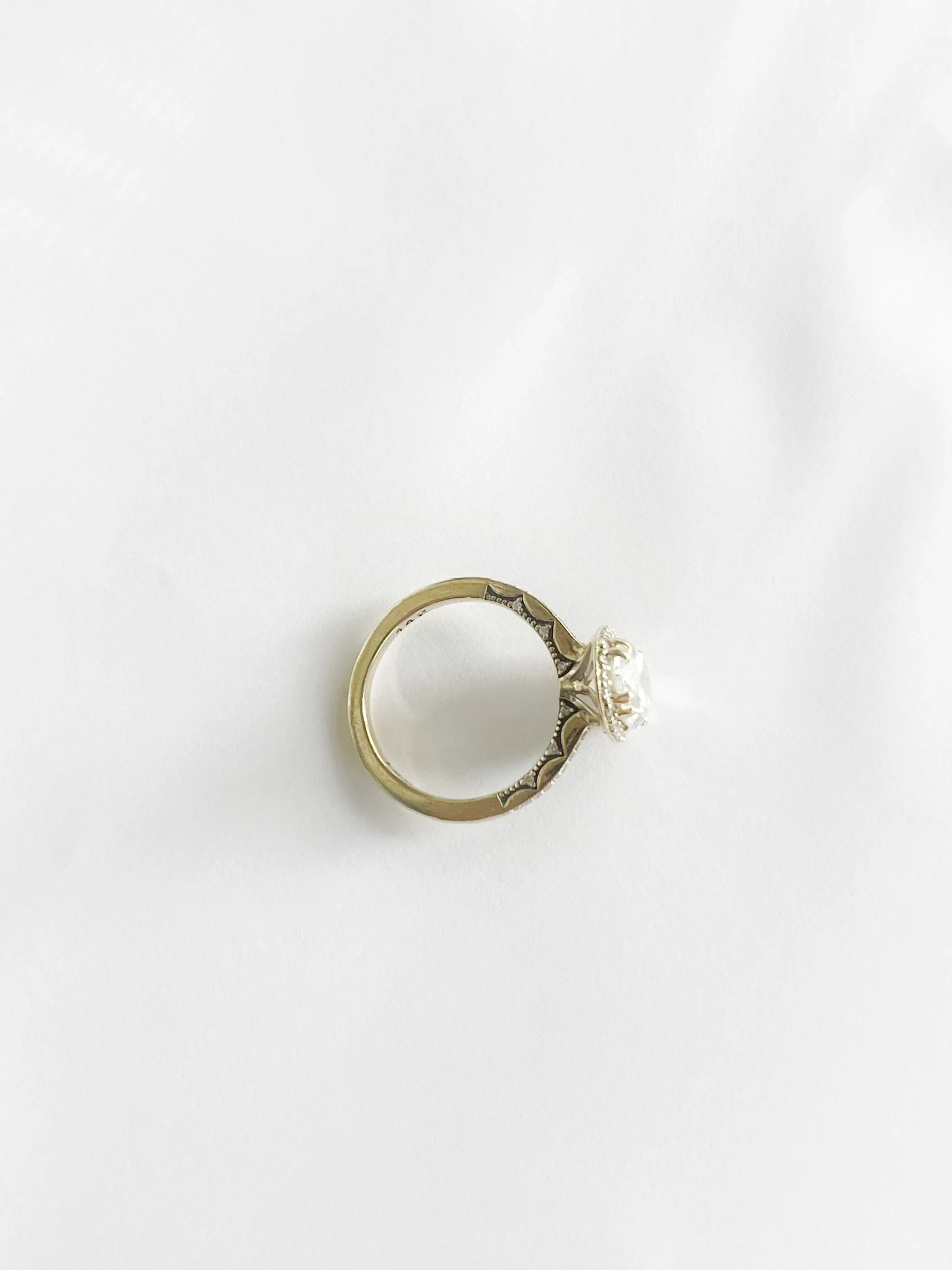 Number/total carats of additional diamonds on the engagement ring: round, combined weight 1.11ct